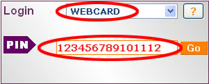 Select “WEBCARD” from the pulldown menu in the login box. Enter your PIN number to login into your cachelan account.
